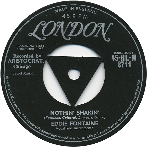 Soon after the release of this new version he found out that his original demo had been sold to Chess Records without his knowledge and had acquired three additional writing credits : by Diane Lampert, John Gluck, Jr and Cirino Colacral. This original (and superior) version came out on Argo 5309 in August 1958 and climbed to # 64 on Billboard's Hot 100, the only chart entry of Eddie's career. "Nothin' Shakin'" was also released in the UK and was later recorded by the Beatles (for the BBC), Billy Fury and Craig Douglas, among others. Next, Fontaine spent some time in Cuba, doing a night club act, until Battista was overthrown by Fidel Castro.